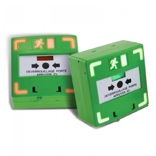 Contrairement au déclencheur manuel rouge utilisé avec les systèmes de sécurité incendie SSI, le déclencheur manuel vert est utilisé pour ouvrir une porte ordinaire dans une situation d’urgence ou pour évacuer rapidement une zone spécifique du bâtiment.